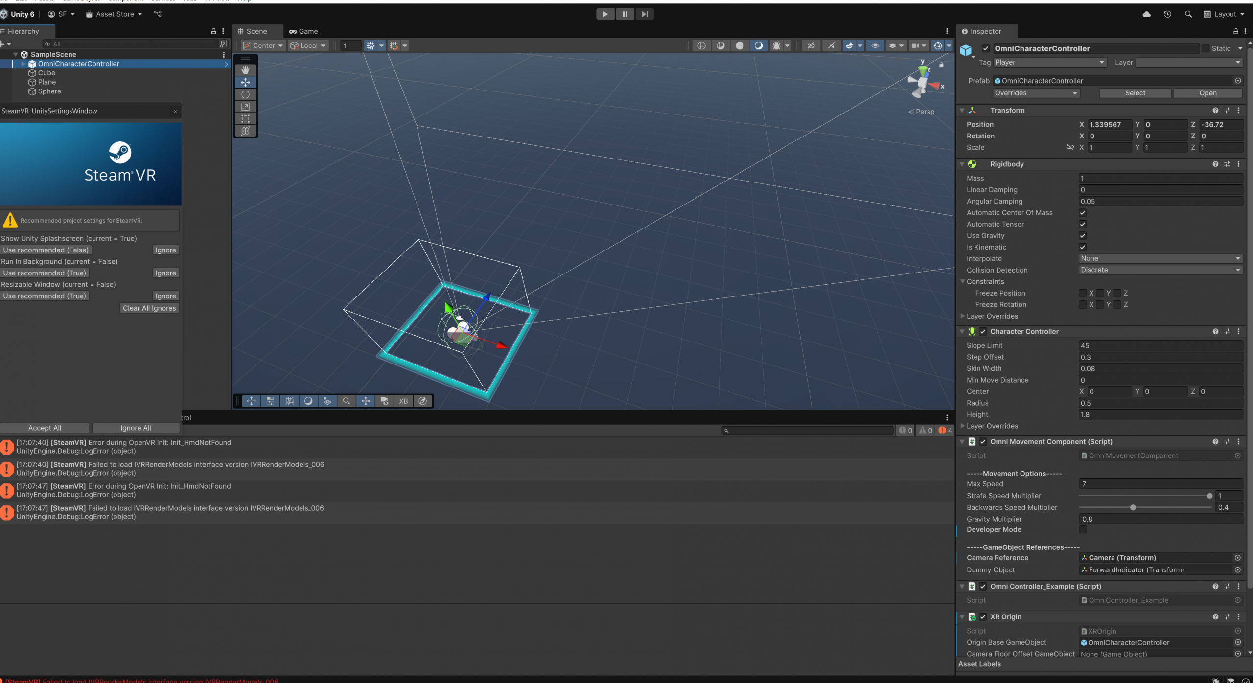 So, the reason I’m so pumped about the Omni test is that the SDK for my particular version of the omni hasn’t really been updated since maybe pre-covid times. I’ve been worried about getting it caught up to the most recent Unity Hub, and I’ve done this before with some Zenva VR training courses I got through humble bundle a long while ago.
